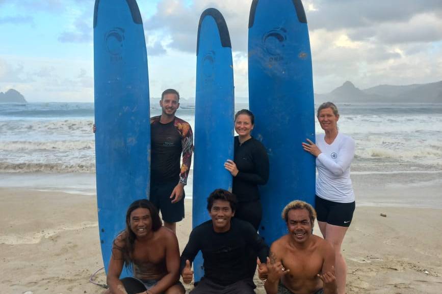 DHM Surf Camp is centrally located in Kuta, a small town in the south of Lombok island. Kuta is the main traveller hub on Lombok with a wealth of restaurants (Western and local) and bars. Despite its rapid development, Kuta retains a laid back vibe and is a great place to meet other travellers and fellow surfers.