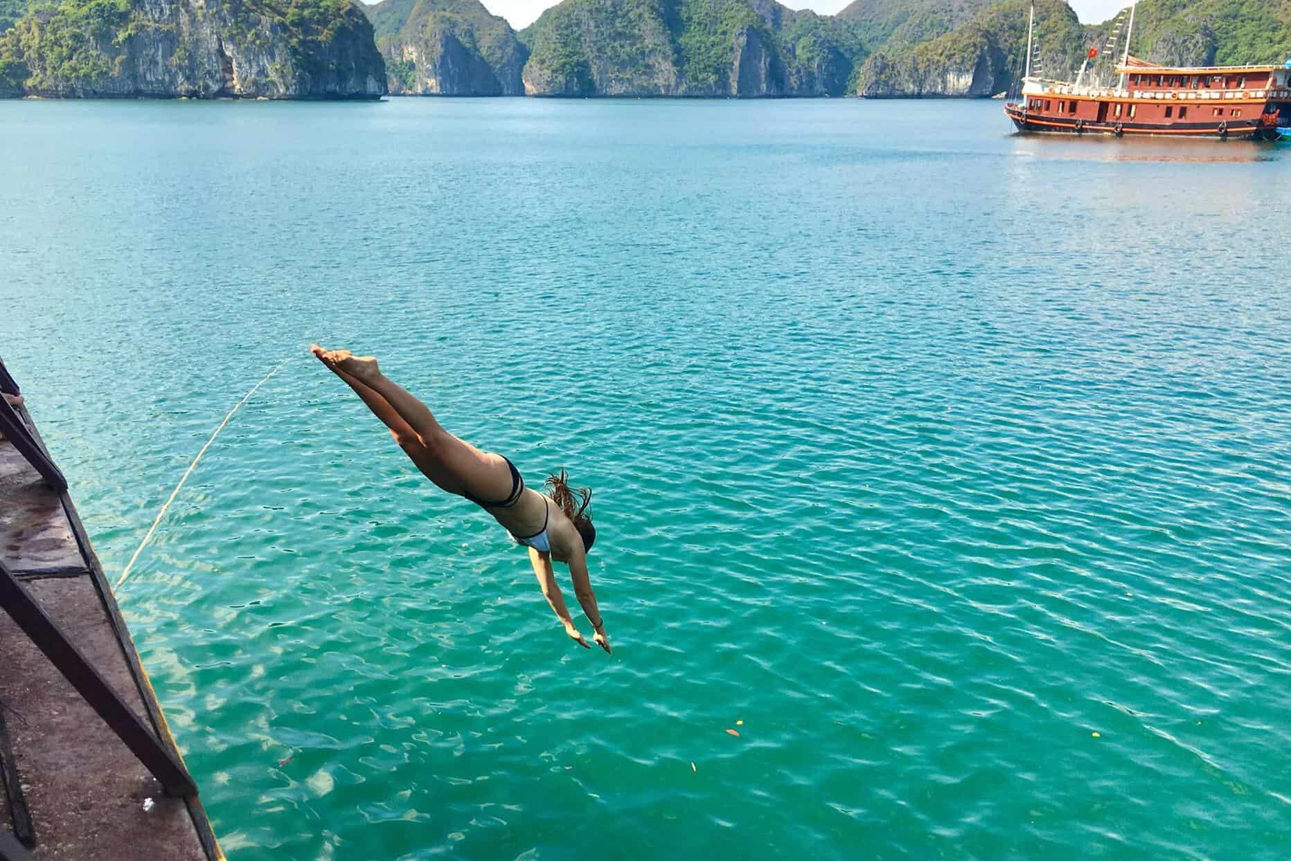 Explore amazing seascapes and make new travel buddies on the famous Halong Hideaway Boat Trip! On this two or three-day adventure, you’ll visit the best and untouched parts of Halong Bay and Lan Ha Bay and witness life on the floating fishing villages. You’ll sail by immense limestone karsts and lose yourself in a world of lush tropical landscapes, amazing mountain views and emerald-green waters. During the trip, you’ll enjoy a range of activities such as kayaking, cycling, caving, trekking, boat jumping, swimming, relaxing in the on-deck jacuzzi and partying the night away with new friends!